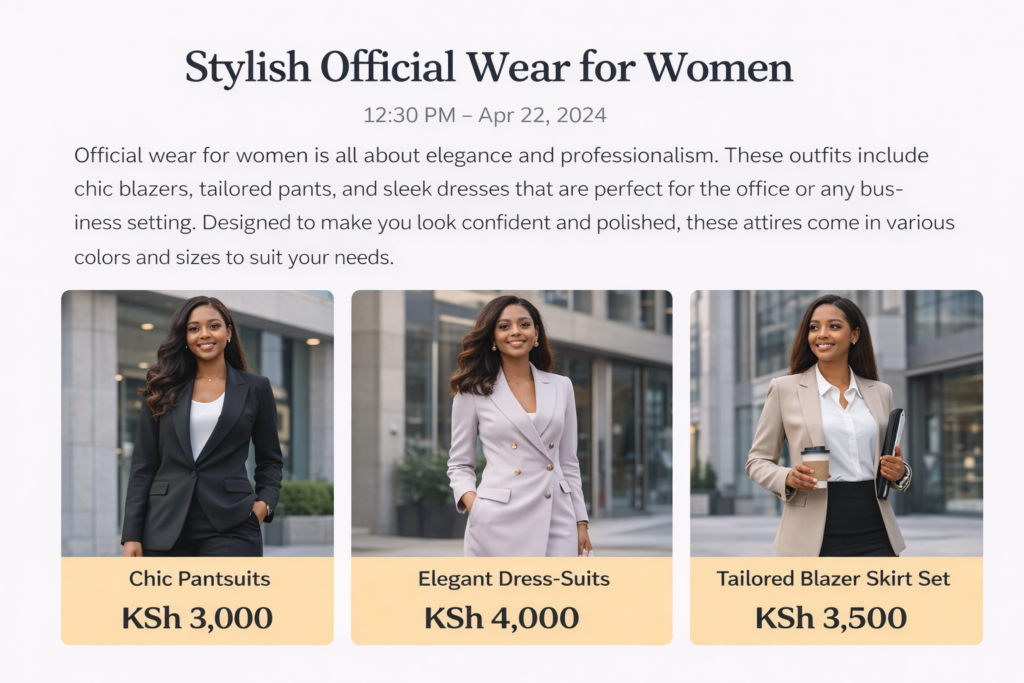 Modern official wear combines structure and elegance, allowing women to feel confident and empowered in any professional environment. With the right fit and balanced design, every outfit reflects strength, ambition, and personal style.
