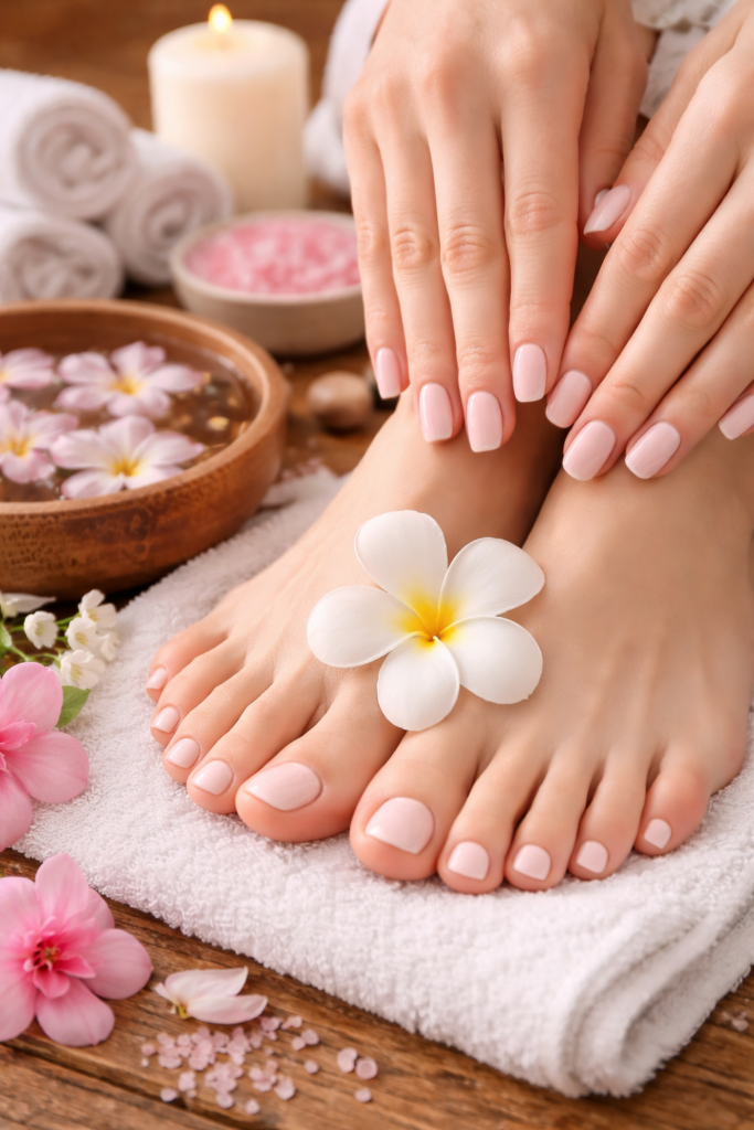 Pamper your feet with our relaxing and rejuvenating pedicure experience. We cleanse, exfoliate, and nourish your skin while shaping and perfecting your nails. Enjoy smooth heels, flawless polish, and long-lasting shine. Step out feeling refreshed, confident, and beautifully polished.